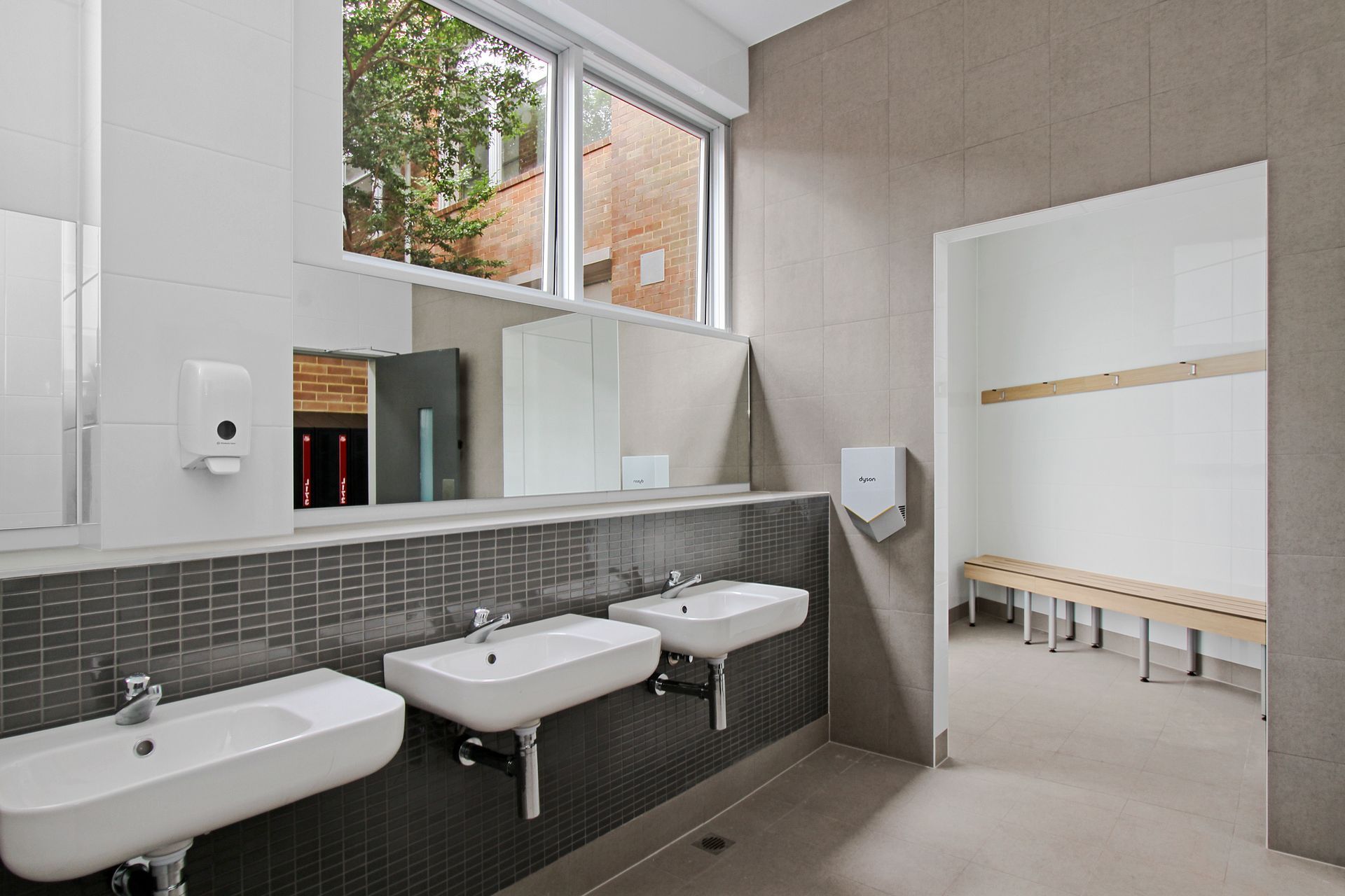 Demolition, Brickwork, Carpentry, Plumbing Upgrade, Electrical Upgrade, Floor Preparation & Waterproofing, Plastering, Floor & Wall Tiling, Mosaics, Glazing, Compact Laminate Partitioning, Bench Seating & Coat Hooks, Sanitaryware Installation, Painting, Signage, Full Site Clean.
