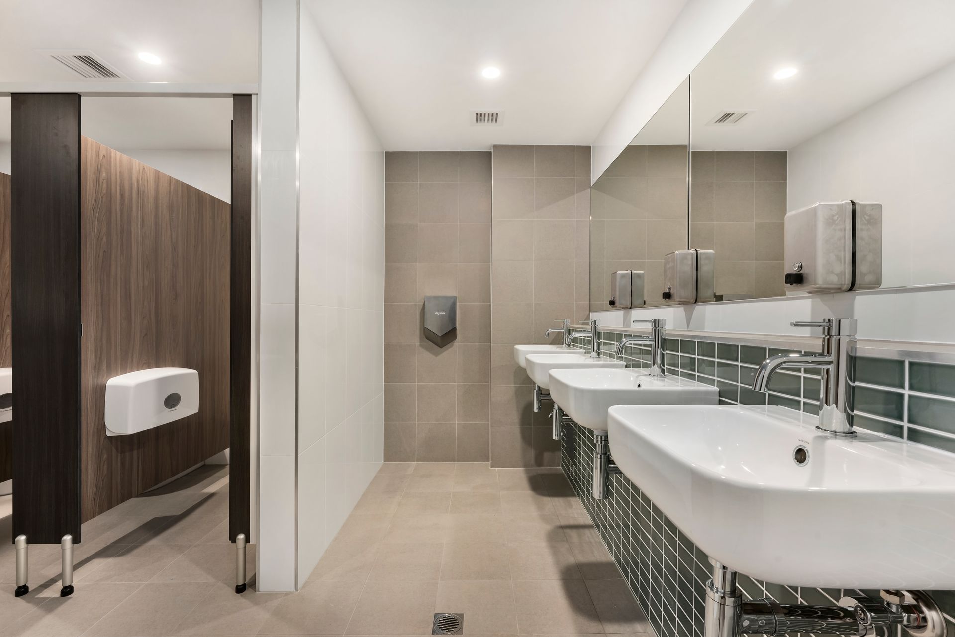Demolition, Carpentry, Plumbing Upgrade, Electrical Upgrade, Mechanical/Ventilation, Floor Preparation & Waterproofing, Plastering, Floor & Wall Tiling, Mosaics, Glazing, Compact Laminate Partitioning, Sanitaryware Installation, Painting, Signage, Access Bathroom Refurbishment, Full Site Clean.