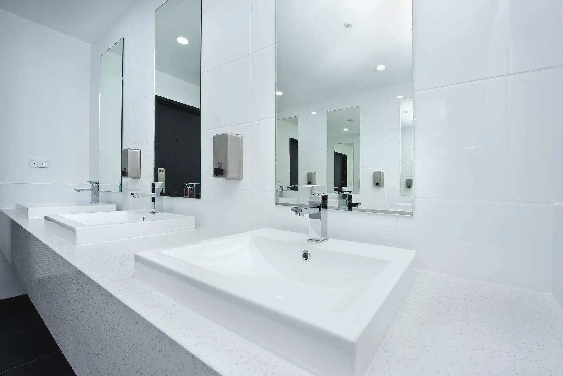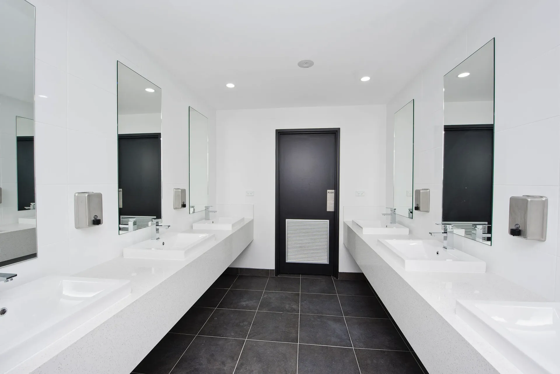 Demolition, Carpentry, Plumbing Upgrade, Electrical Upgrade, Floor Preparation & Waterproofing, Plastering, Floor & Wall Tiling, Glazing, Compact Laminate Partitioning, Sanitaryware Installation, Stone Benchtops, Painting, Signage, Full Site Clean.