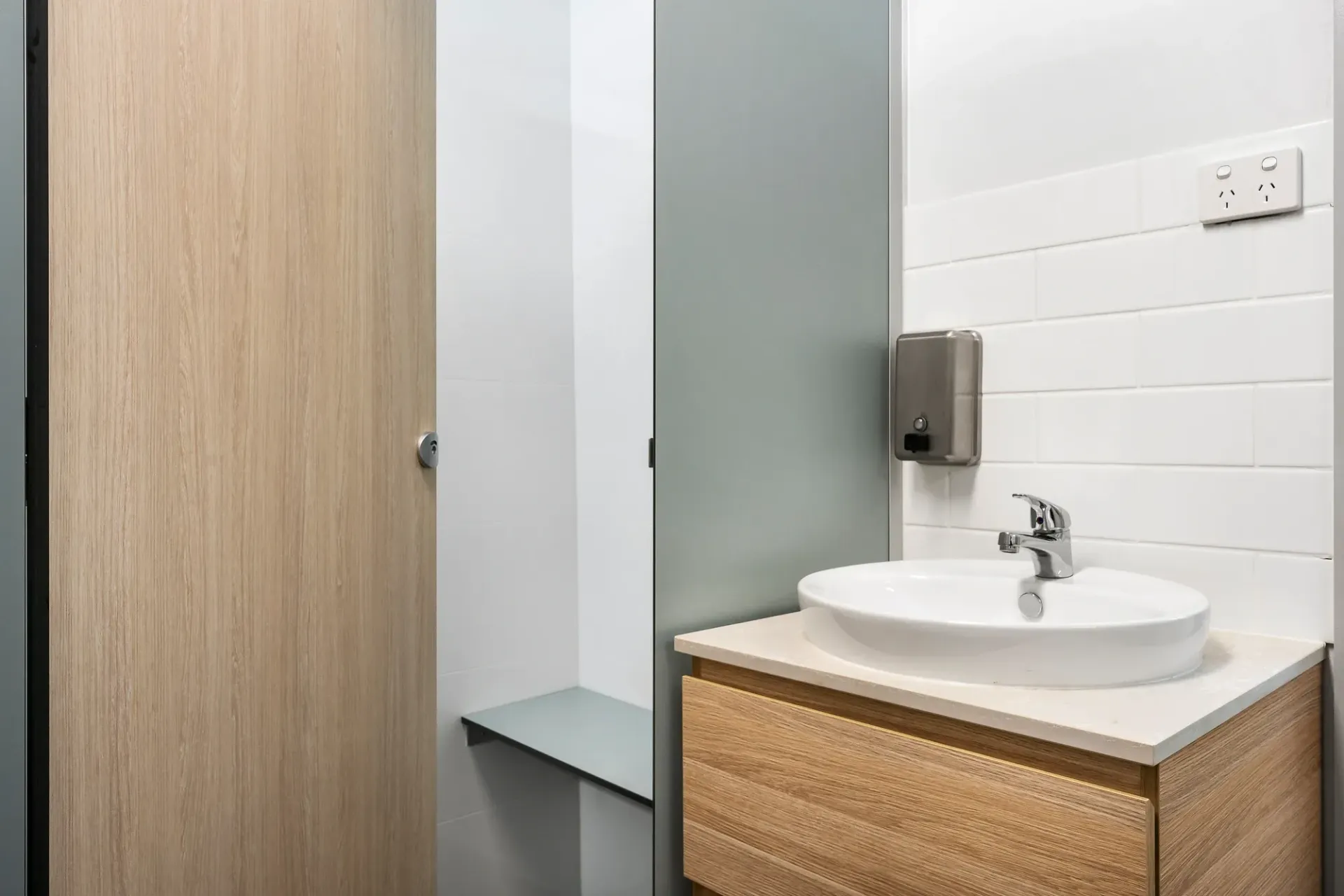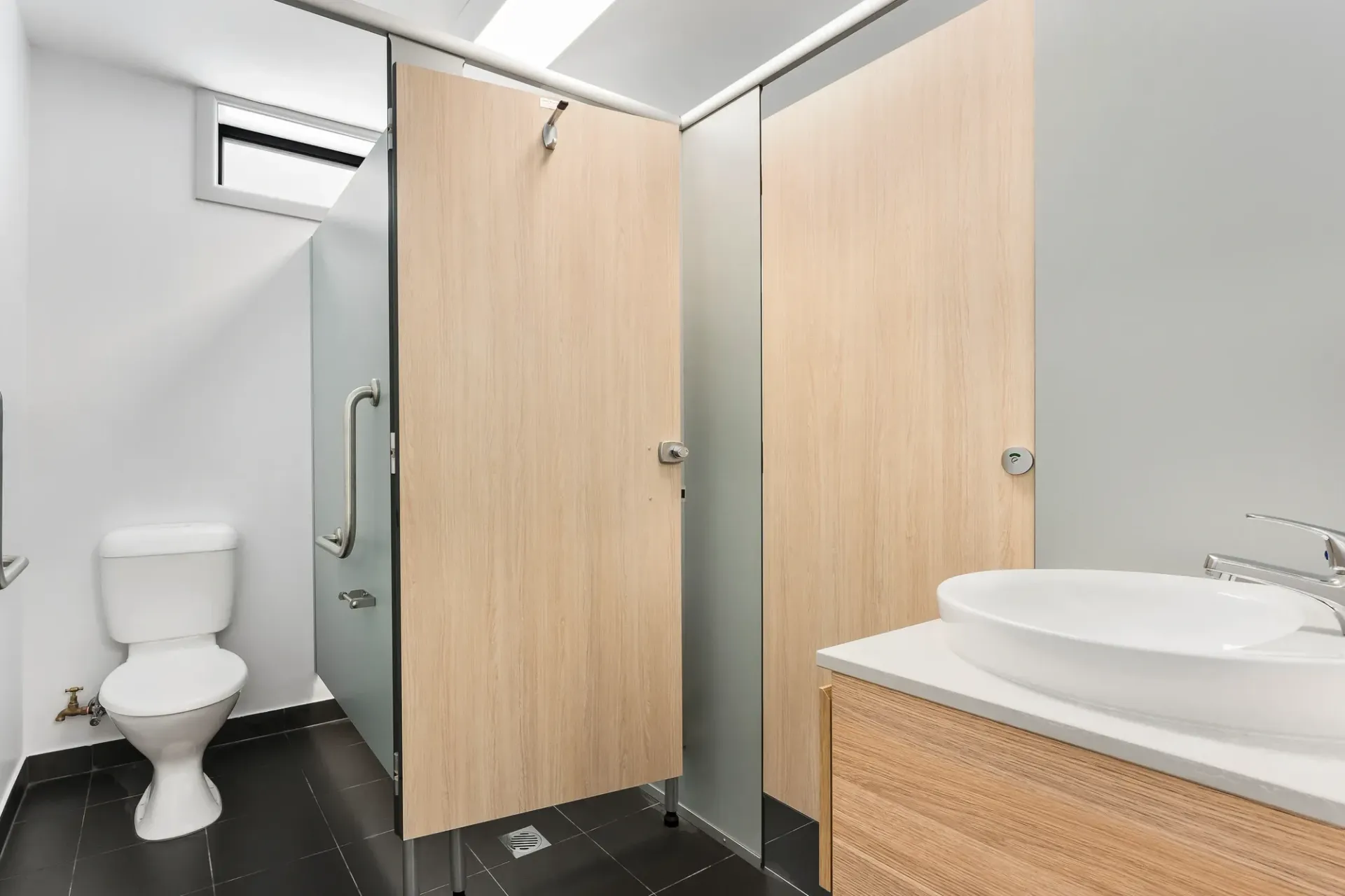 Demolition, Carpentry, Plumbing Upgrade, Electrical Upgrade, Floor Preparation & Waterproofing, Plastering, Floor & Wall Tiling, Glazing, Compact Laminate Partitioning, Joinery, Lockers, Bench Seating, Sanitaryware Installation, Painting, Signage, Full Site Clean.