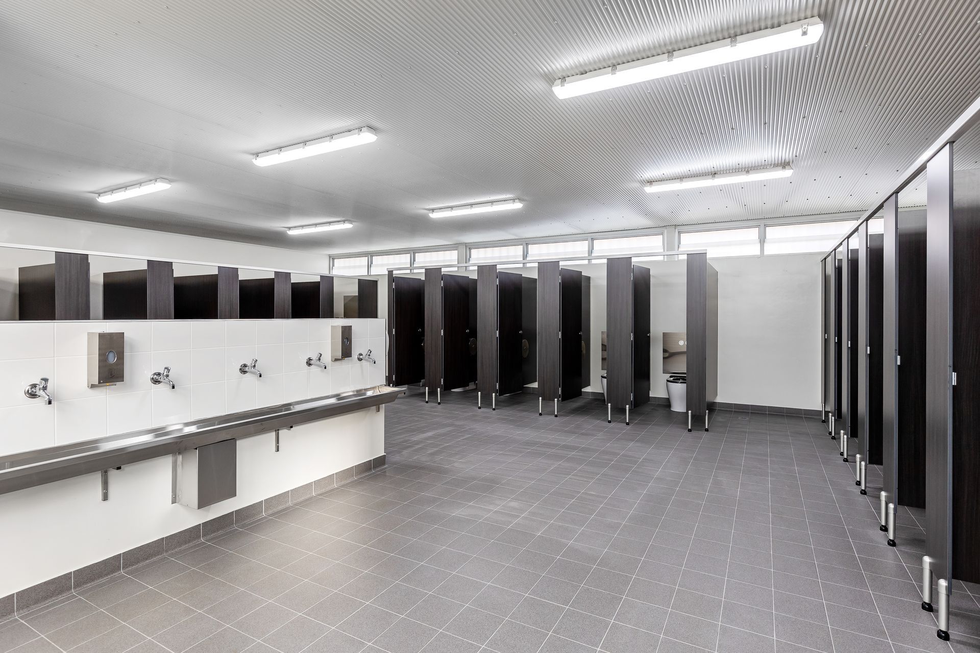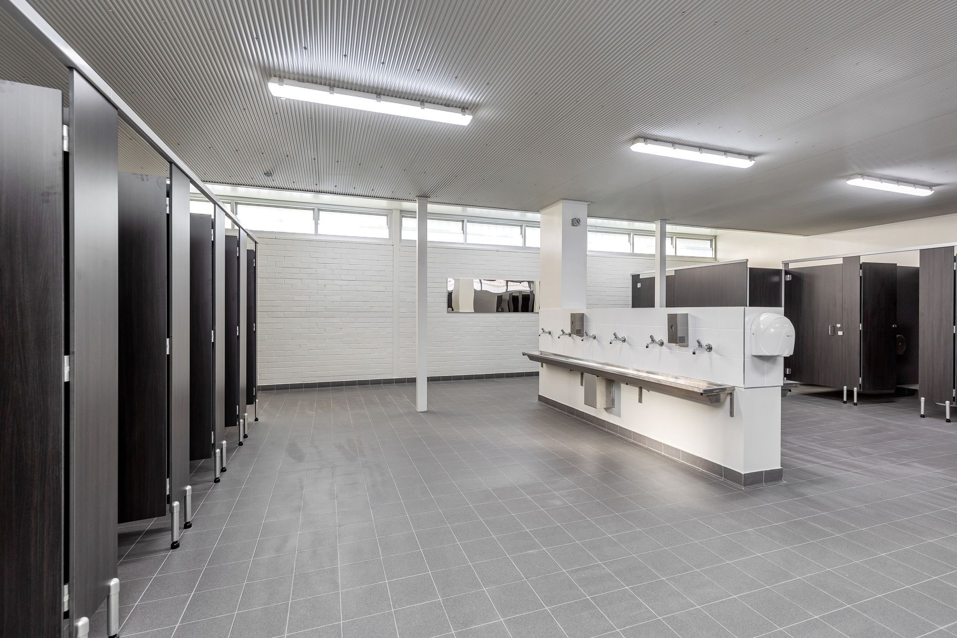 Demolition, Carpentry, Plumbing Upgrade, Electrical Upgrade, Floor Preparation & Waterproofing, Plastering, Mini Orb Ceiling, Floor Tiling, Glazing, Compact Laminate Partitioning, Sanitaryware Installation, Stainless Steel Wash Troughs, Painting, Signage, Entry Gates, Full Site Clean.