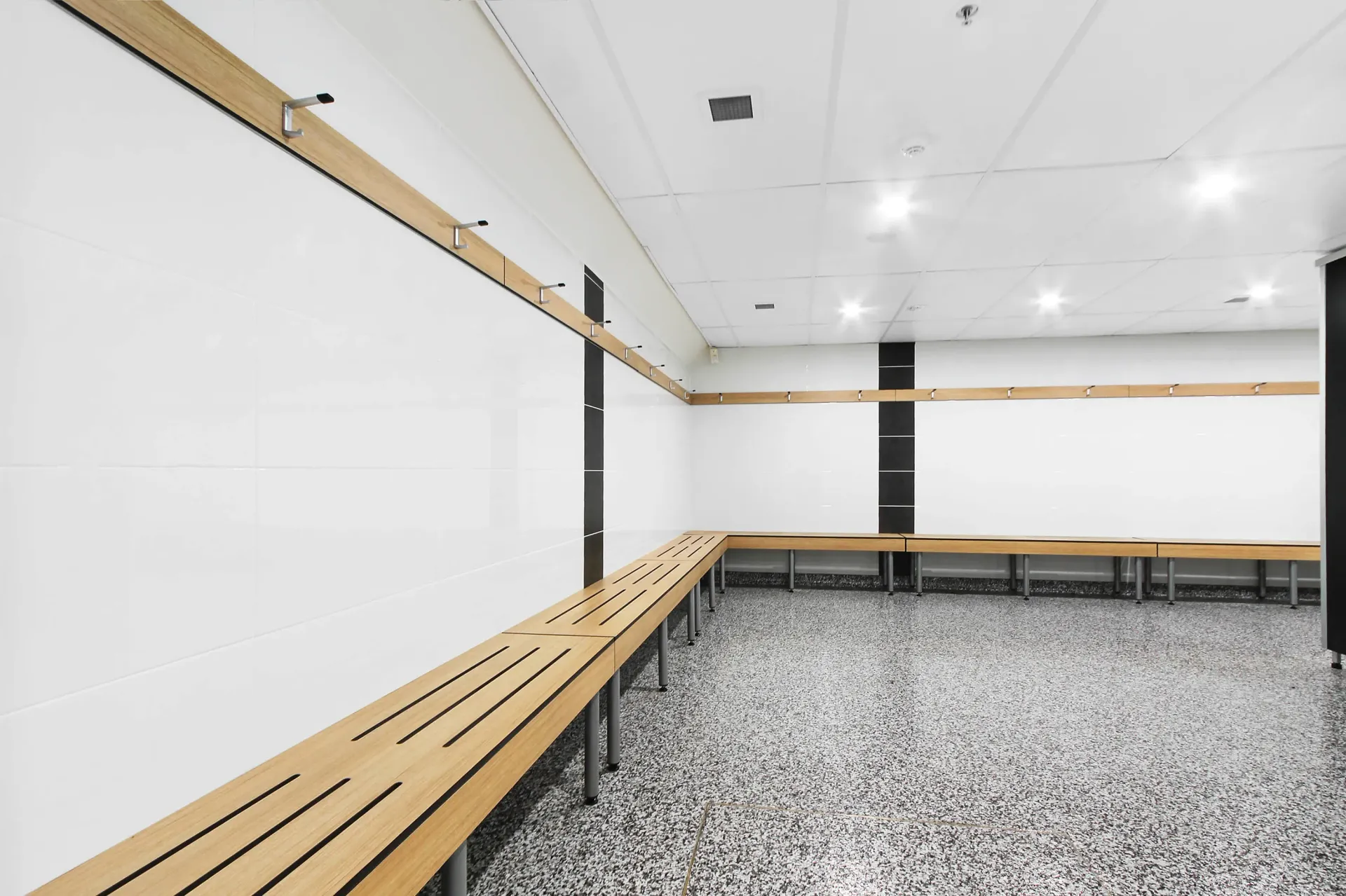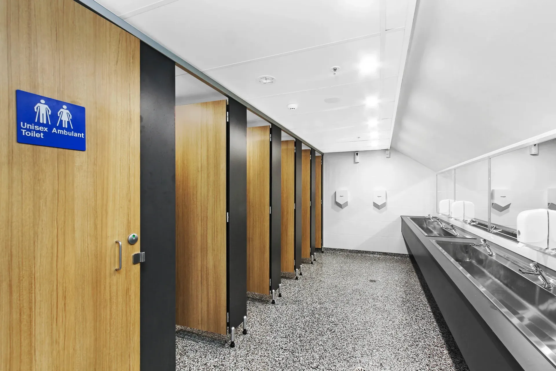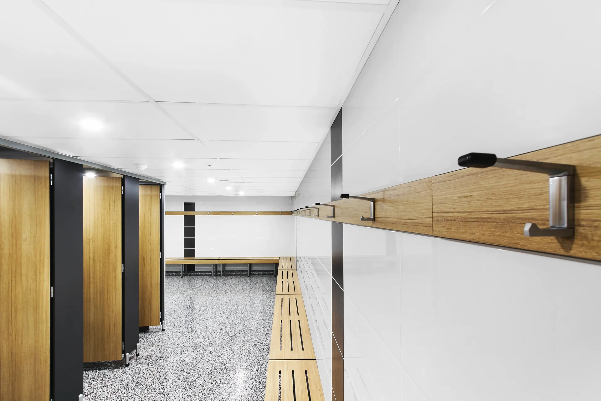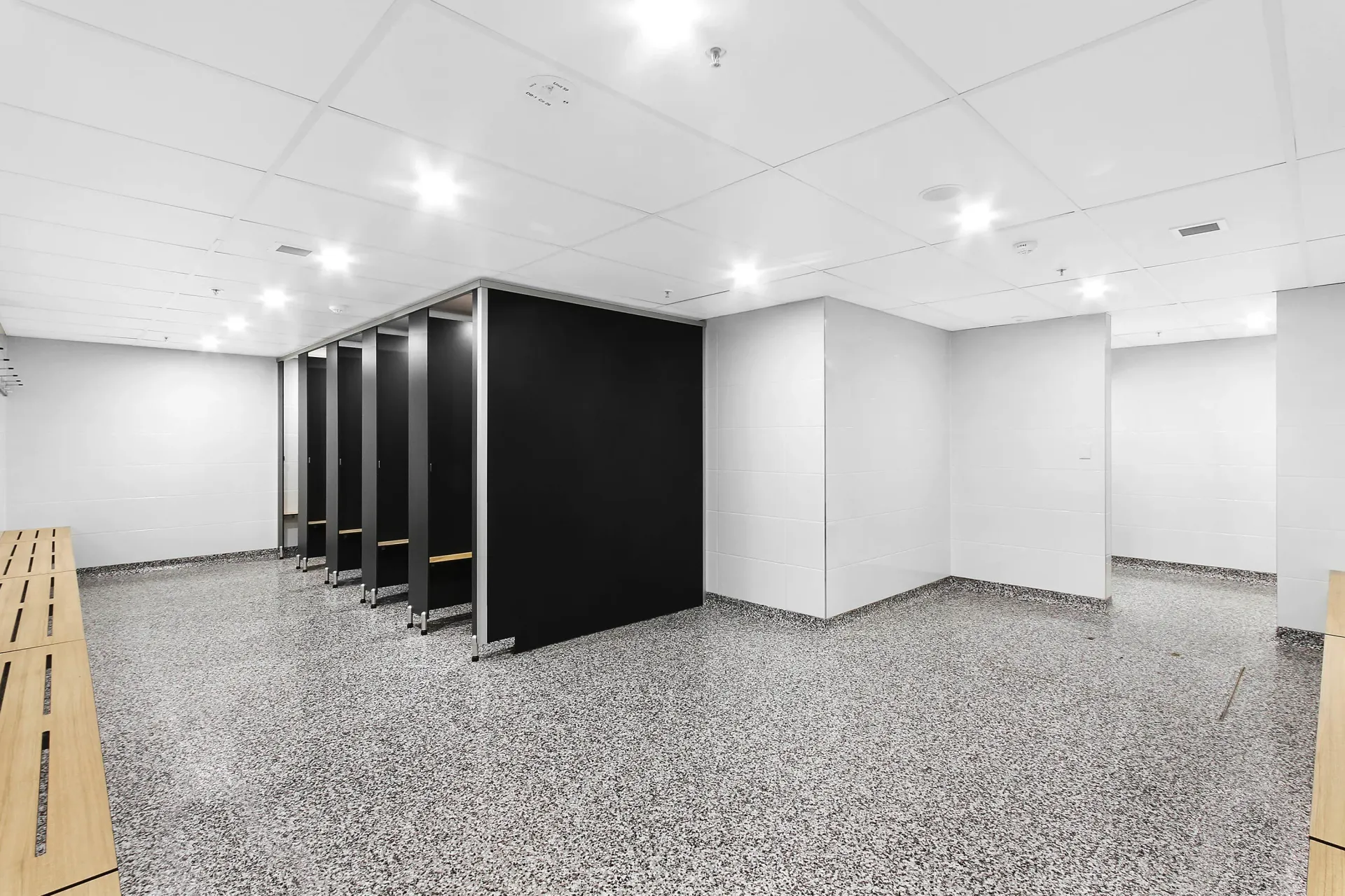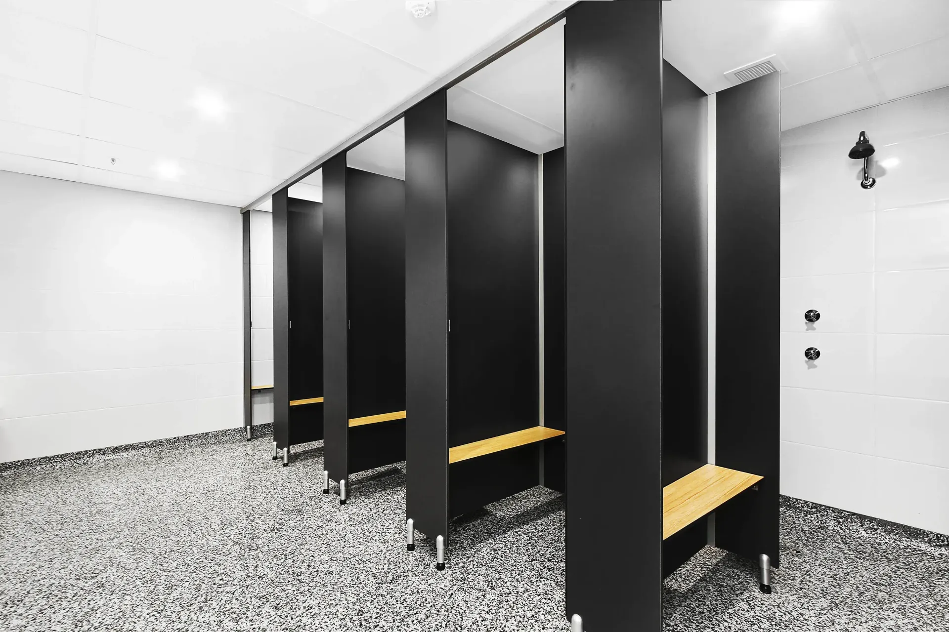 Demolition, Carpentry, Plumbing Upgrade, Electrical Upgrade, Mechanical/Ventilation, Floor Preparation, Suspended Grid Ceiling, Epoxy Flooring, Wall Tiling, Glazing, Sanitaryware Installation, Compact Laminate Partitioning, Bench Seating & Coat Hooks, Compact Laminate Wash Station, Painting, Signage, Full Site Clean.