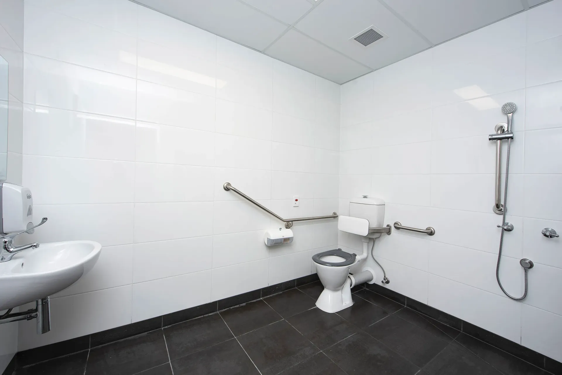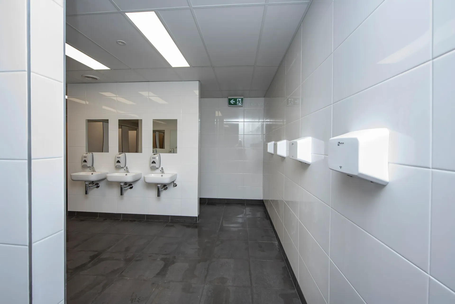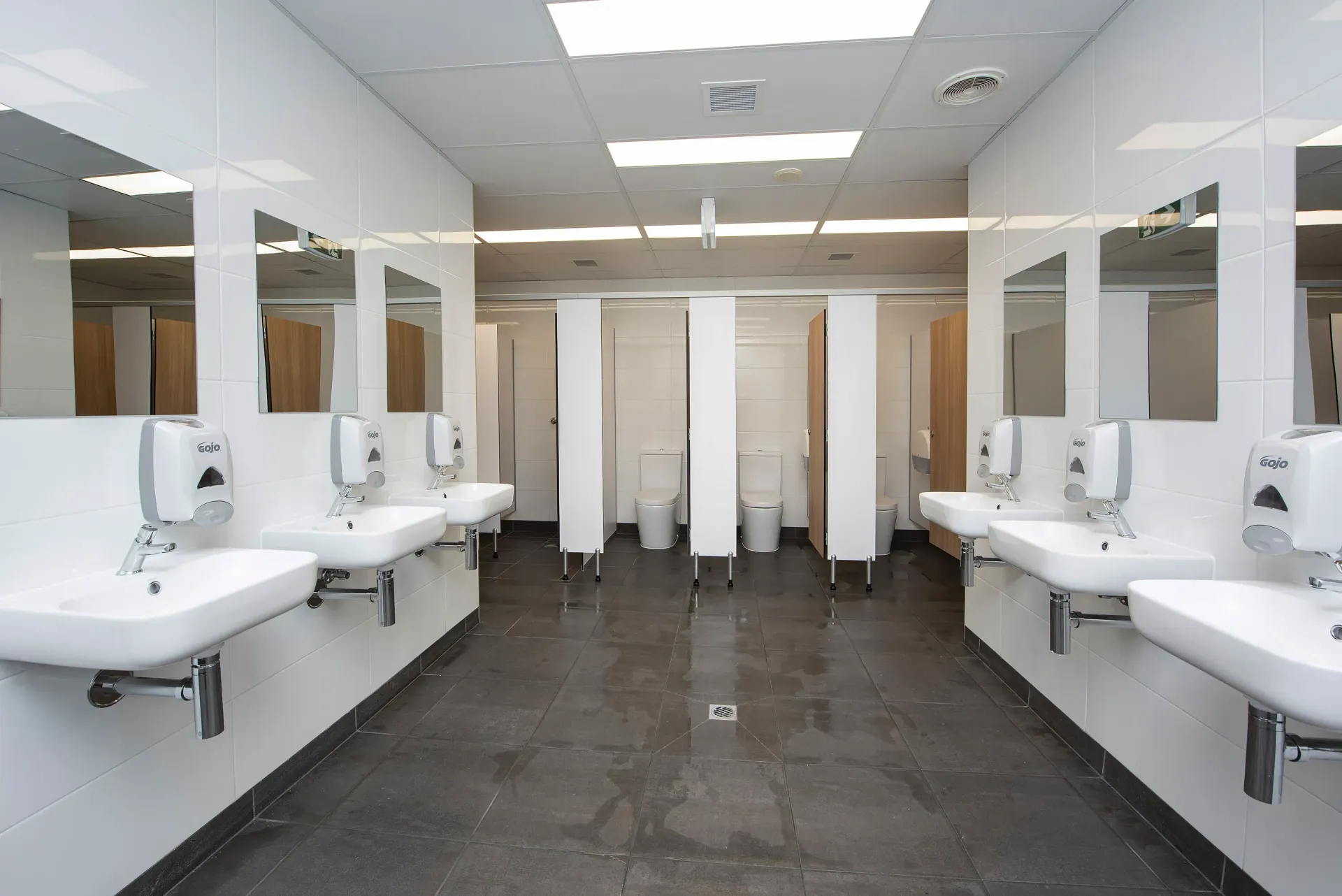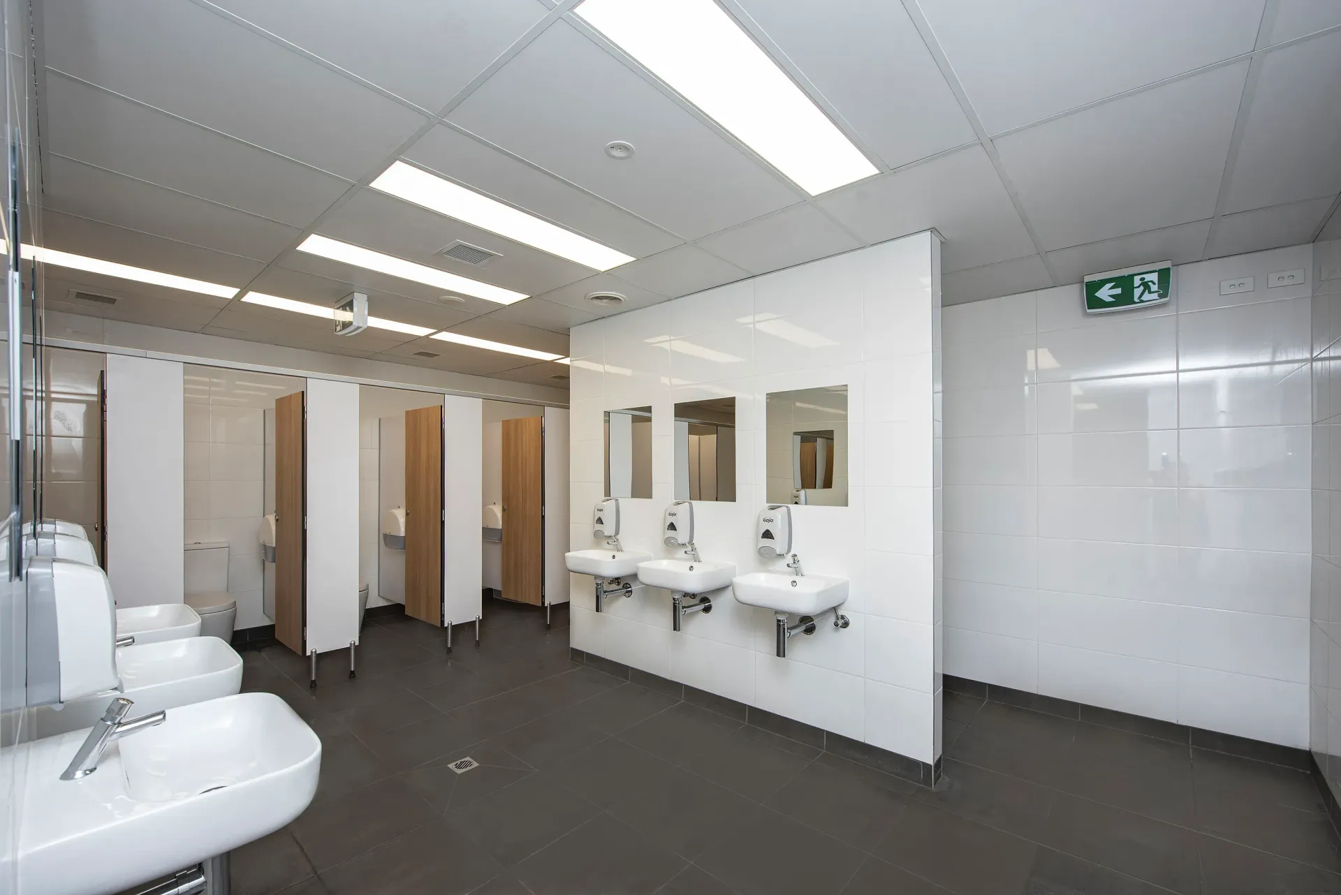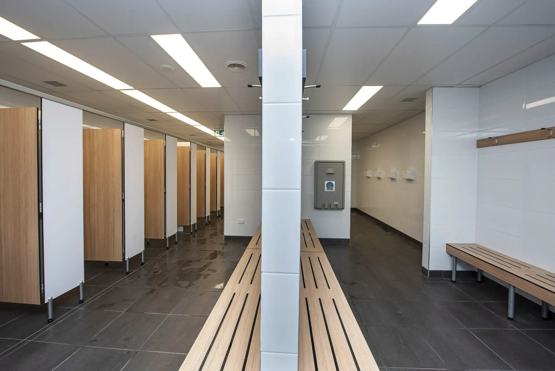 Demolition, Brickwork, Carpentry, Plumbing Upgrade, Electrical Upgrade, Mechanical/Ventilation, Floor Preparation & Waterproofing, Plastering, Suspended Grid Ceiling, Floor & Wall Tiling, Glazing, Compact Laminate Partitioning, Bench Seating, Coat Hooks, Sanitaryware Installation, Painting, Signage, Access Bathroom Refurbishment, Full Site Clean.
