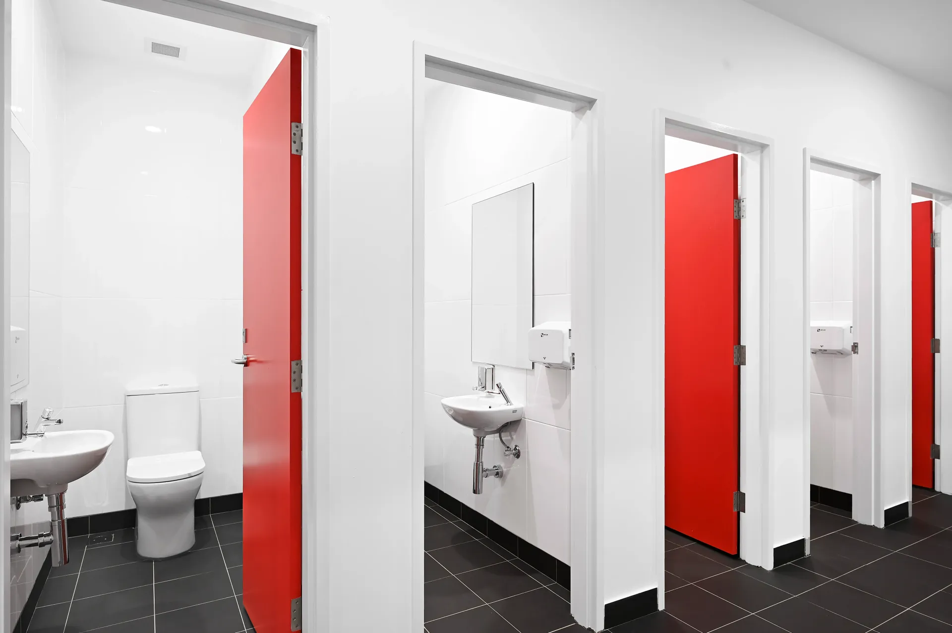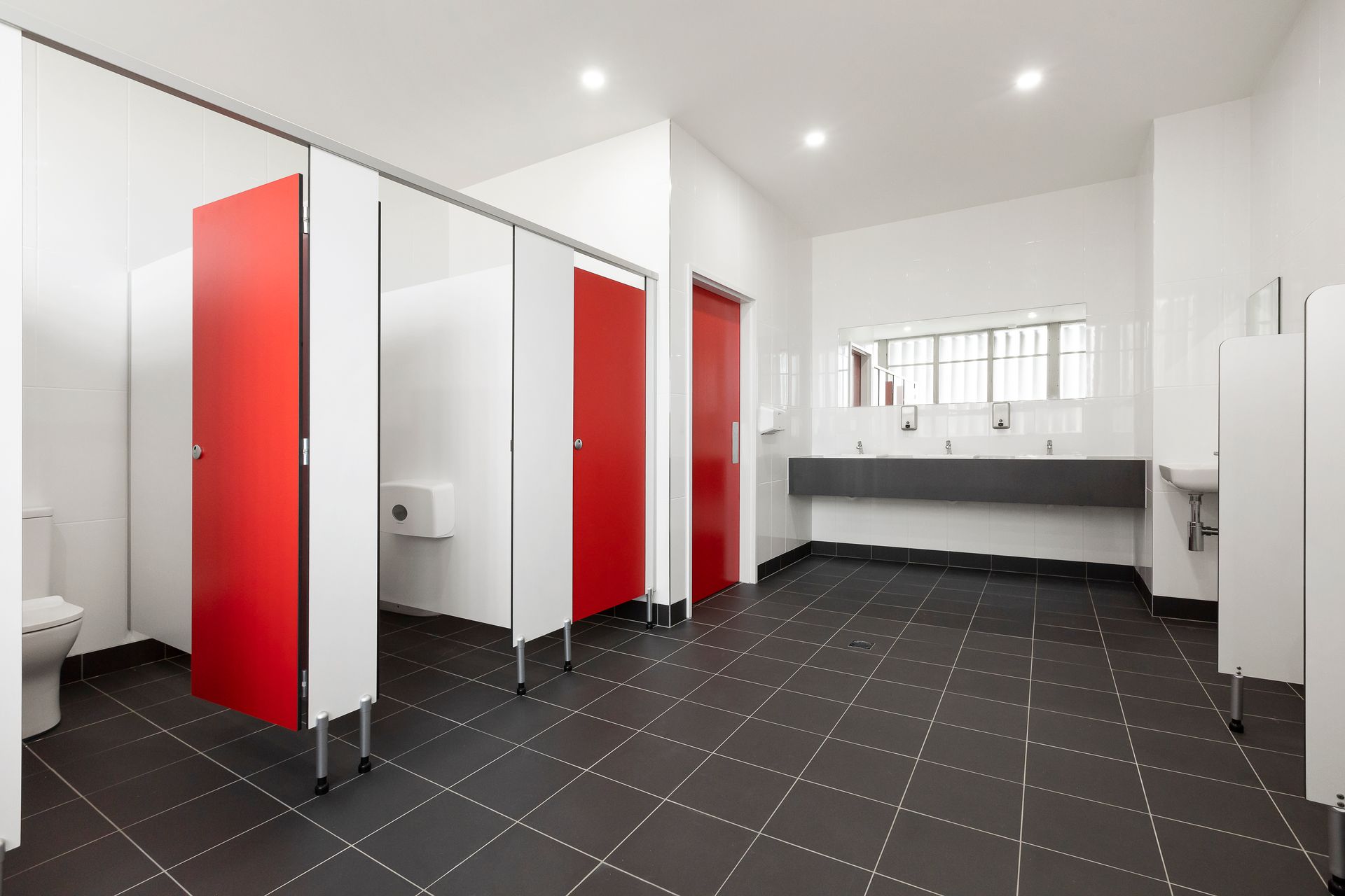 Demolition, Concrete, Carpentry, Plumbing Upgrade, Electrical Upgrade, HVAC, Floor Preparation & Waterproofing, Plastering, Floor & Wall Tiling, Glazing, Compact Laminate Partitioning, Sanitaryware Installation, Stone Benches, Painting, Signage, Custom Back-Lit Mirrors, Kitchen Joinery, Full Site Clean.